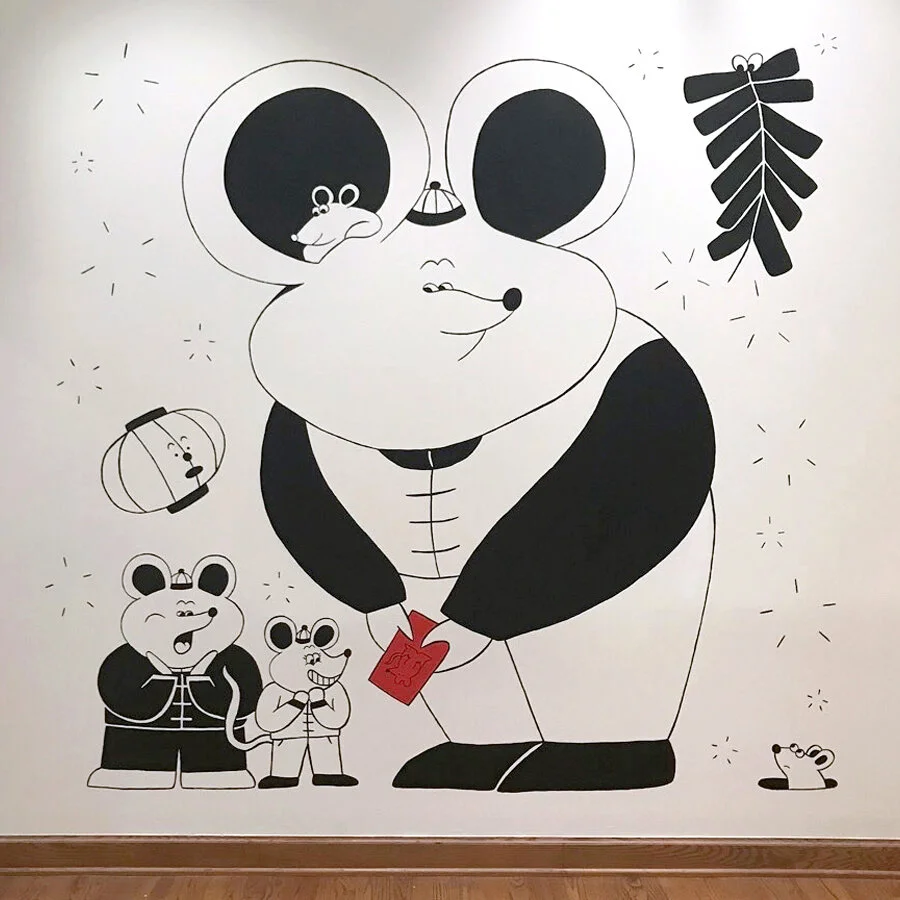 Right / Mural for the 2020 Red Envelope Show at the Chinese American National Museum in Los Angeles